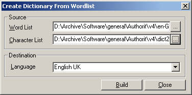 (DICT25.MAP ). I entered "English UK" for the language. Press Build.